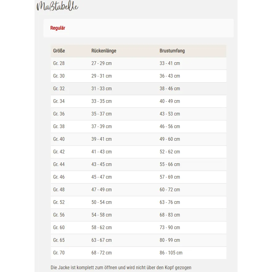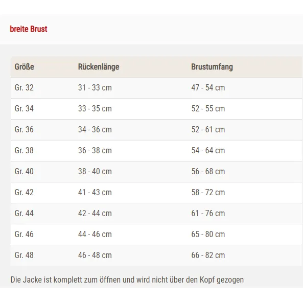 Zusätzlich ist die Jacke windabweisend und atmungsaktiv. Die Sonder-Größe "Mops & Co." eignet sich hervorragend für Hunde mit breiter Brust, wie Mops oder Bulldogge.